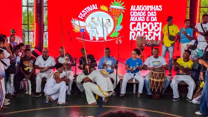 <p> <a rel="nofollow" target="_blank" target="_blank" href="https://www.alagoinhas.ba.gov.br/wp-content/uploads/2025/12/bfa3ebd2-0e8e-4783-96e7-24c74cdf2336.jpeg"></a> Entre os dias 6 e 7 de dezembro, a Praça dos Esportes, em Alagoinhas, foi palco do 5º Festival Cidade das Águas e da Capoeiragem, uma celebração dedicada à valorização da capoeira. O encontro reuniu grupos de Alagoinhas e região, promovendo troca de saberes, valorização de mestres e a preservação dessa arte que carrega tradição, resistência e ancestralidade.</p>