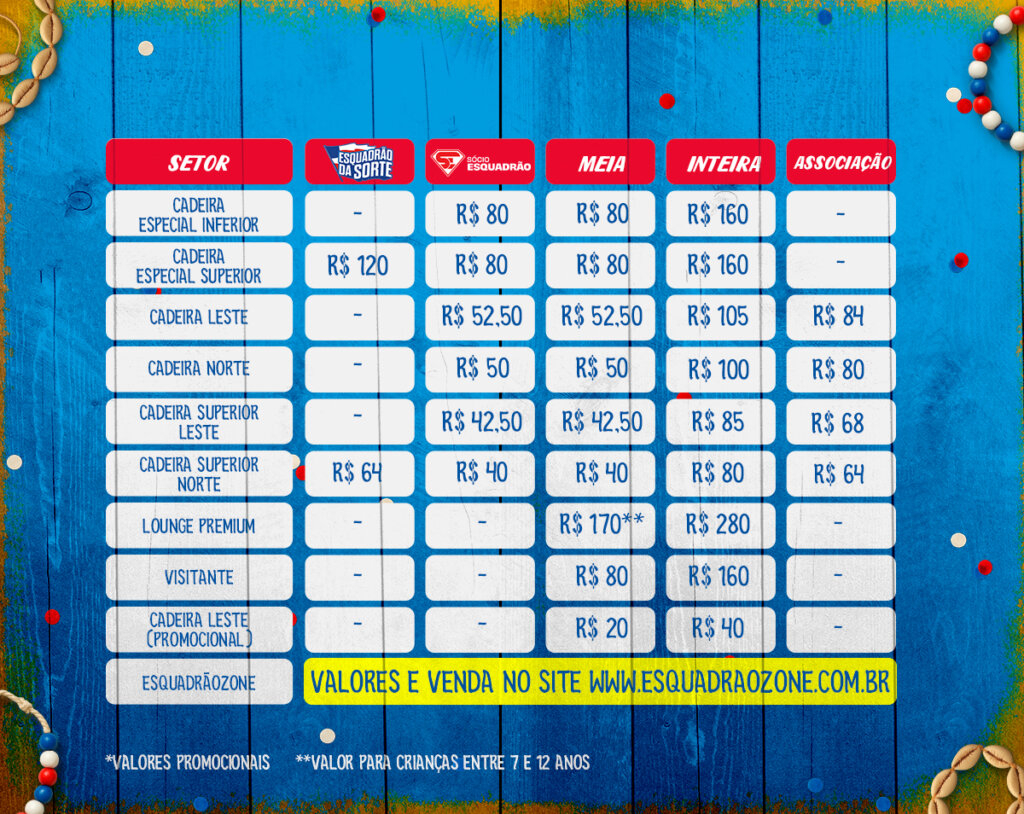 <p><strong>TERÇA-FEIRA (21) – Venda exclusiva para sócios Esquadrão de Aço</strong></p>