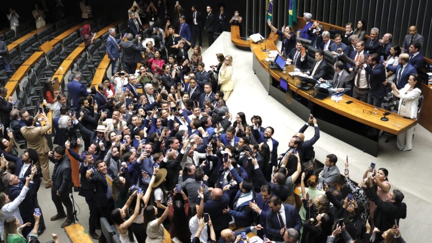 <p><span style="font-weight: 400;">O projeto, que reduz penas para crimes de golpe de Estado e abolição do Estado de Direito, pode beneficiar o ex-presidente </span><a rel="nofollow" target="_blank" href="https://monitor.poder360.com.br/politicos-do-brasil/630212/JAIR-BOLSONARO?ano=2022"><span style="font-weight: 400;">Jair Bolsonaro</span></a><span style="font-weight: 400;"> (PL) e mais 849 condenados pelos atos extremistas de 8 de janeiro de 2023.</span></p>