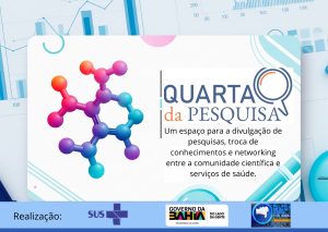 <p>A Quarta da Pesquisa integra a agenda de eventos da Secretaria de Saúde da Bahia e, a cada edição, apresenta novos temas que fortalecem a produção e a disseminação do conhecimento científico no âmbito do SUS. Para este ano, estão previstas outras três edições, nos meses de junho, agosto e outubro.</p>