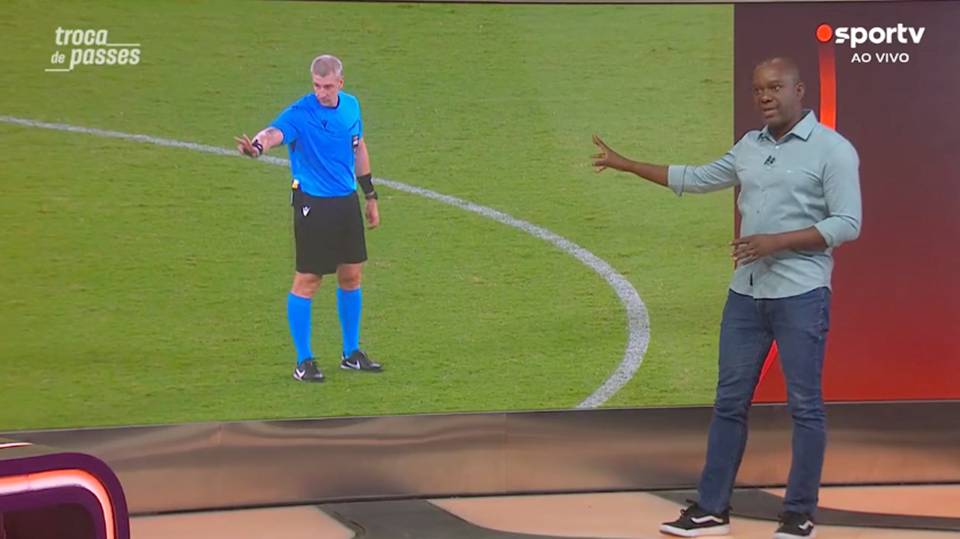 <p>Em relação a entrada de Arrascaeta no tornozelo de Ramon, que ficou mancando em campo, o comentarista afirmou que não é lance para cartão vermelho porque o meia recebe um tranco e cai atingindo o lateral do Vitória. Sobre o braço de Luiz Araújo no rosto de Ramon, ele também não vê como lance de expulsão.</p>