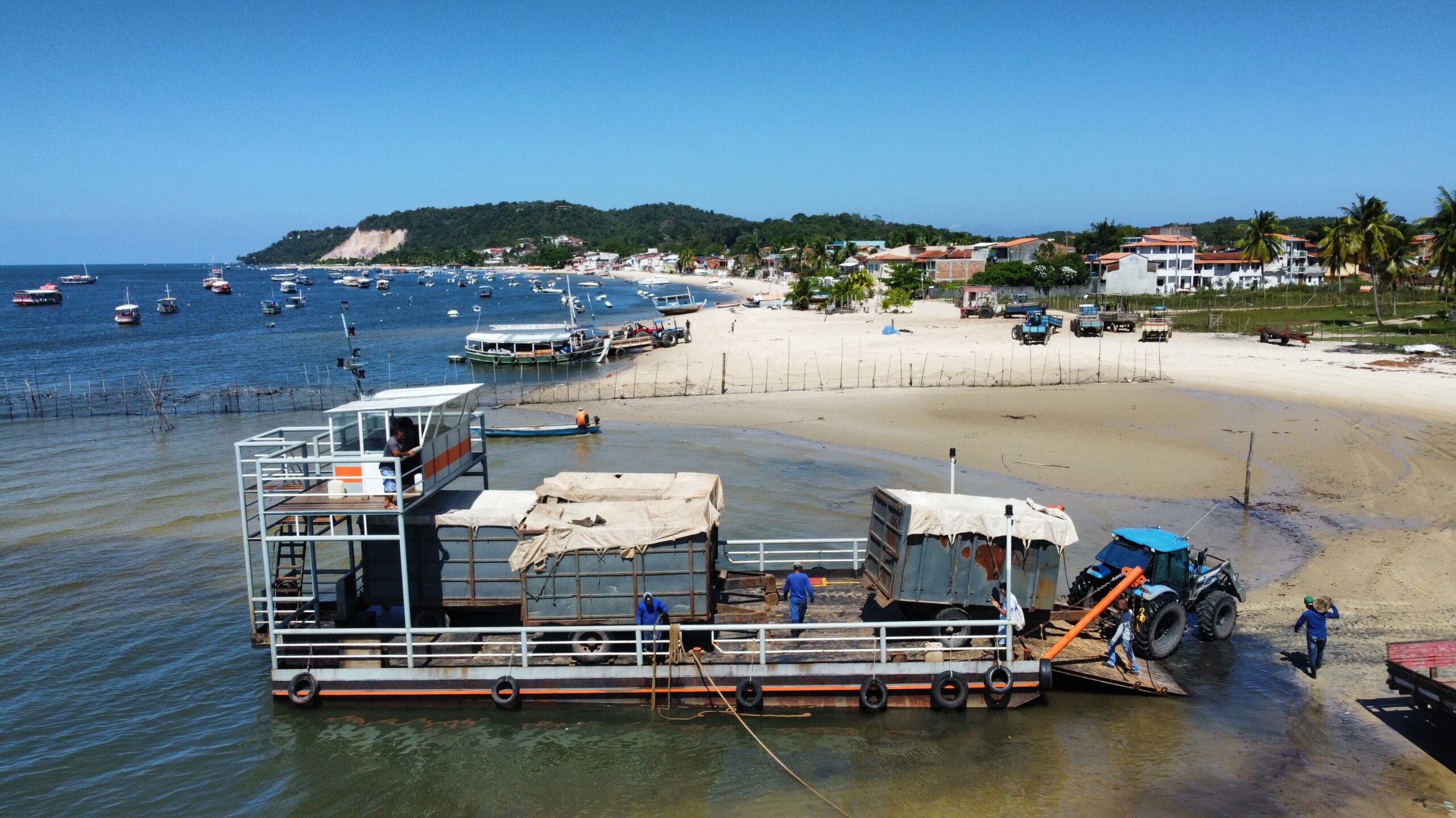<div id="attachment_95152" style="width: 2570px" class="wp-caption alignnone"><img aria-describedby="caption-attachment-95152" class="wp-image-95152 size-full" src="https://ancoradanoticia.com.br/wp-content/uploads/2025/12/01-scaled.jpg" alt="" width="2560" height="1440" /><p id="caption-attachment-95152" class="wp-caption-text"><em> Balsa utilizada para a retirada de resíduos sólidos do arquipélago!</em></p></div>